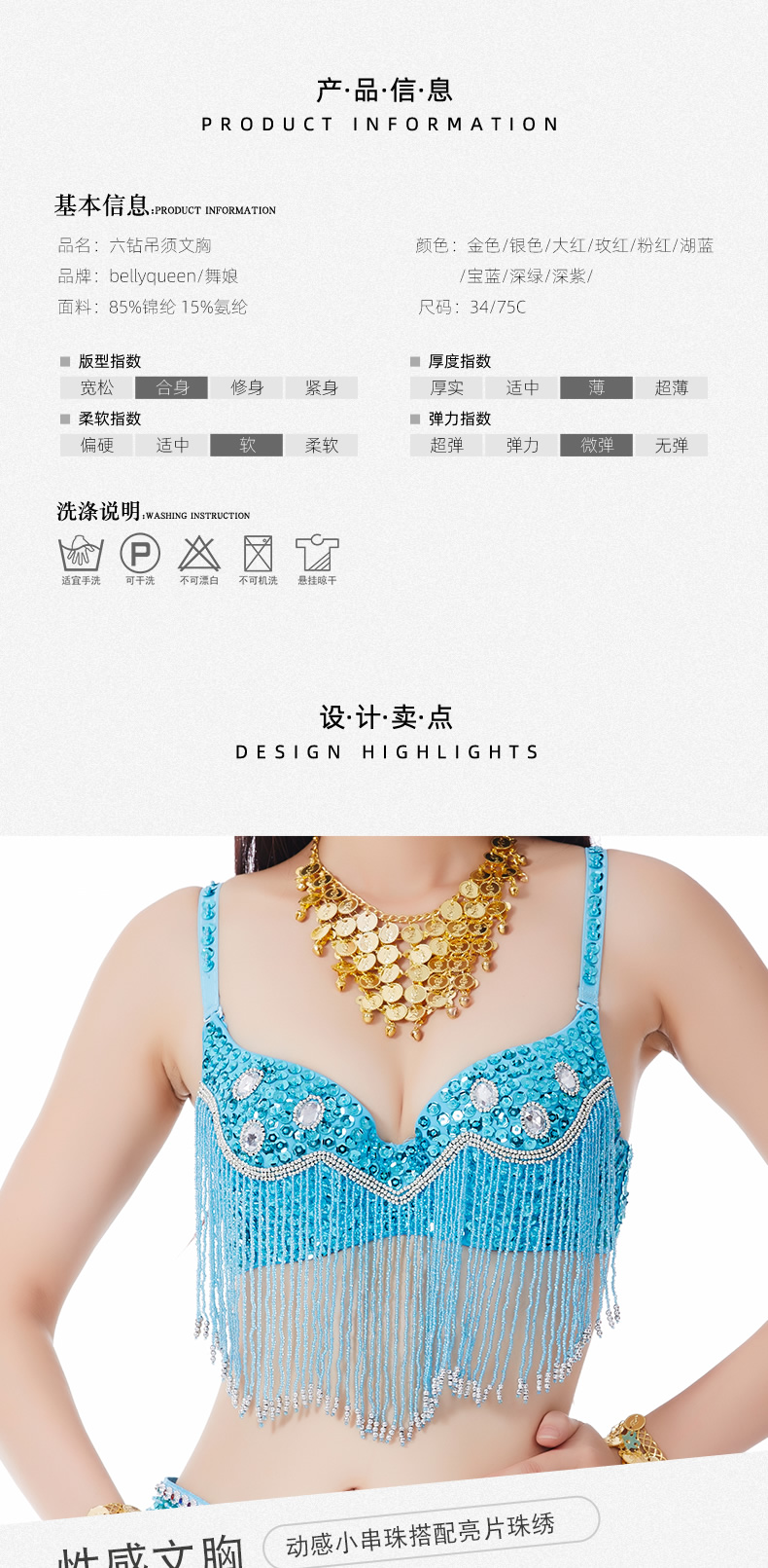 Belly dance tops >> Beaded Type >> B02# Six Diamond belly dance bras Back