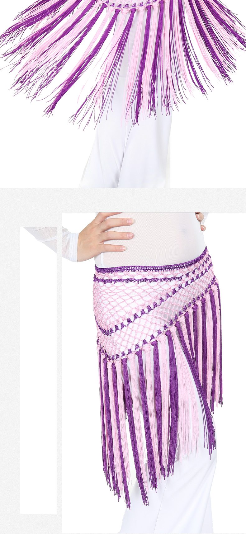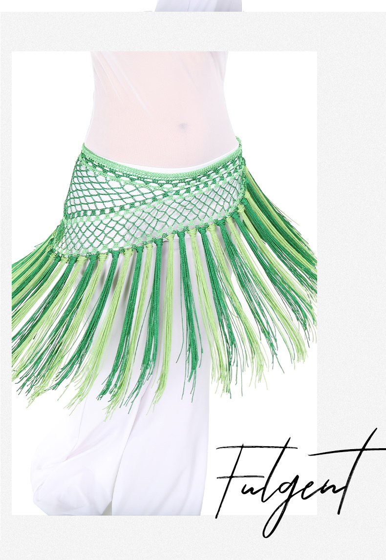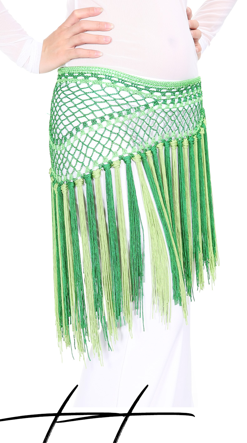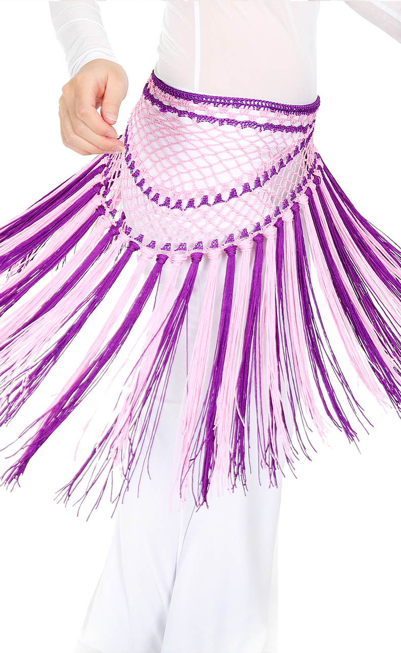 | 肚皮舞腰链 >> 专业型多币腰链 >> 阿根廷双色短流苏臀巾 |