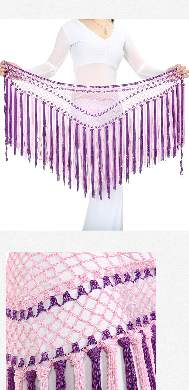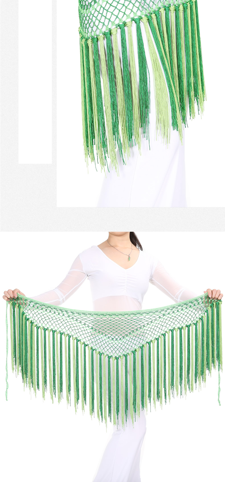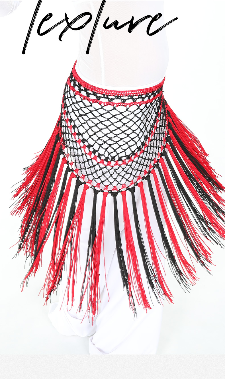 | 肚皮舞腰链 >> 专业型多币腰链 >> 阿根廷双色短流苏臀巾 |