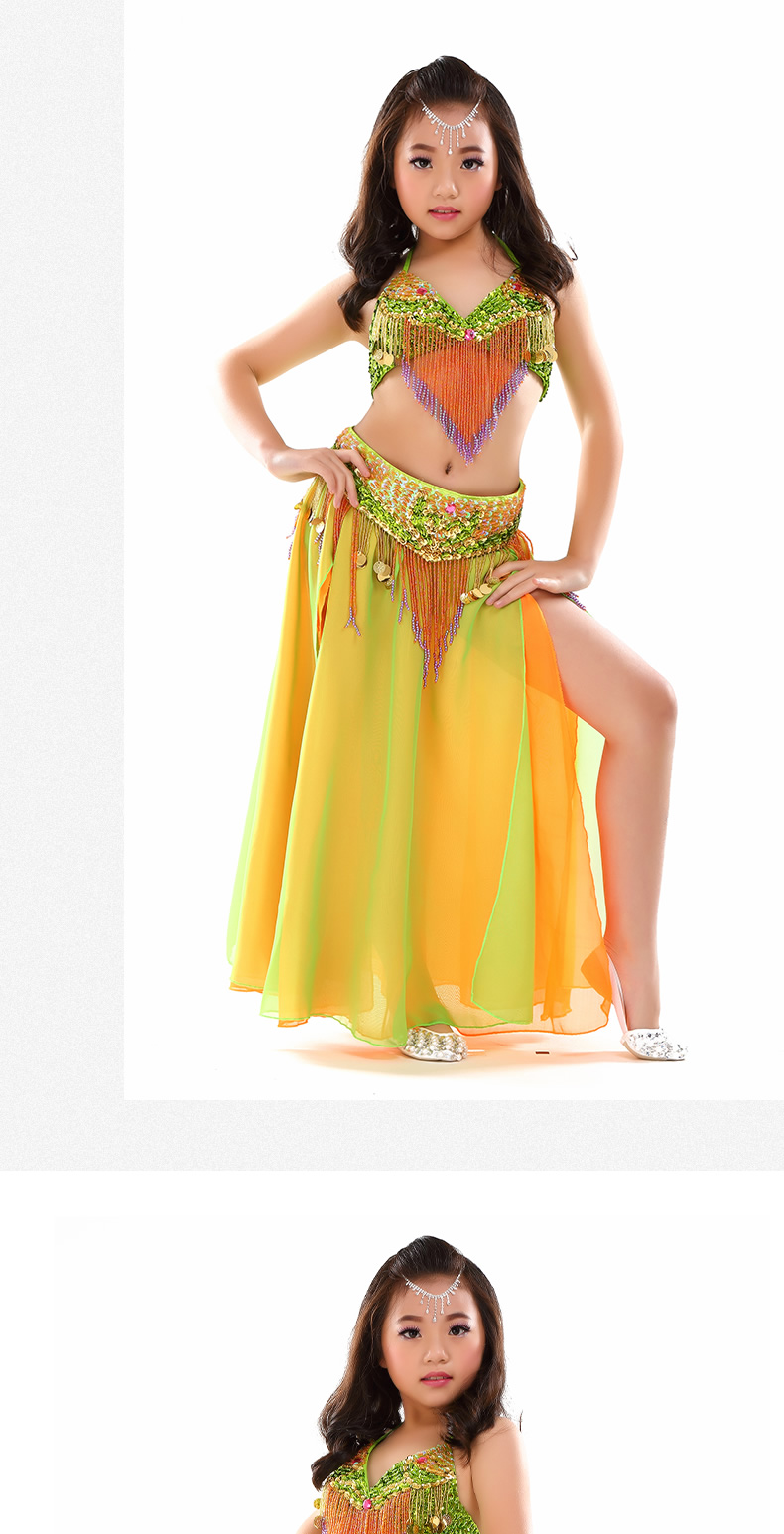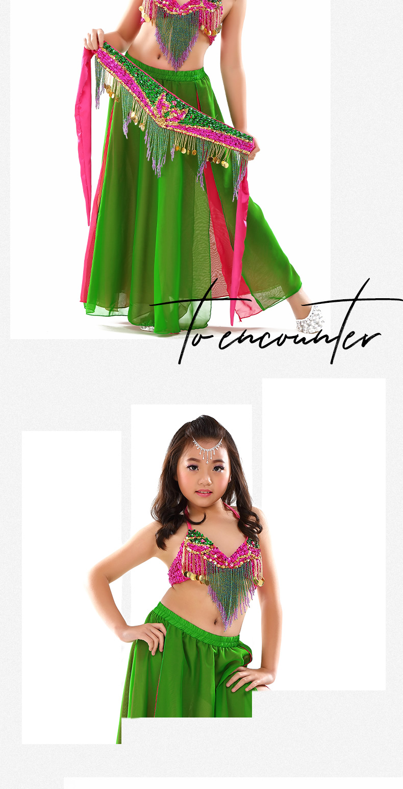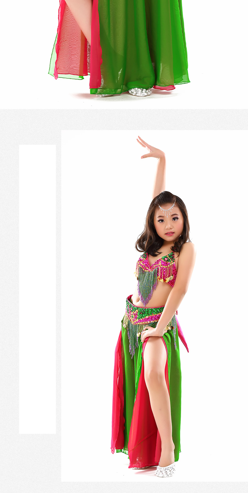 | 肚皮舞裙子 >> 练习裙子 >> 儿童868#+雪纺双开叉间色裙套装 |