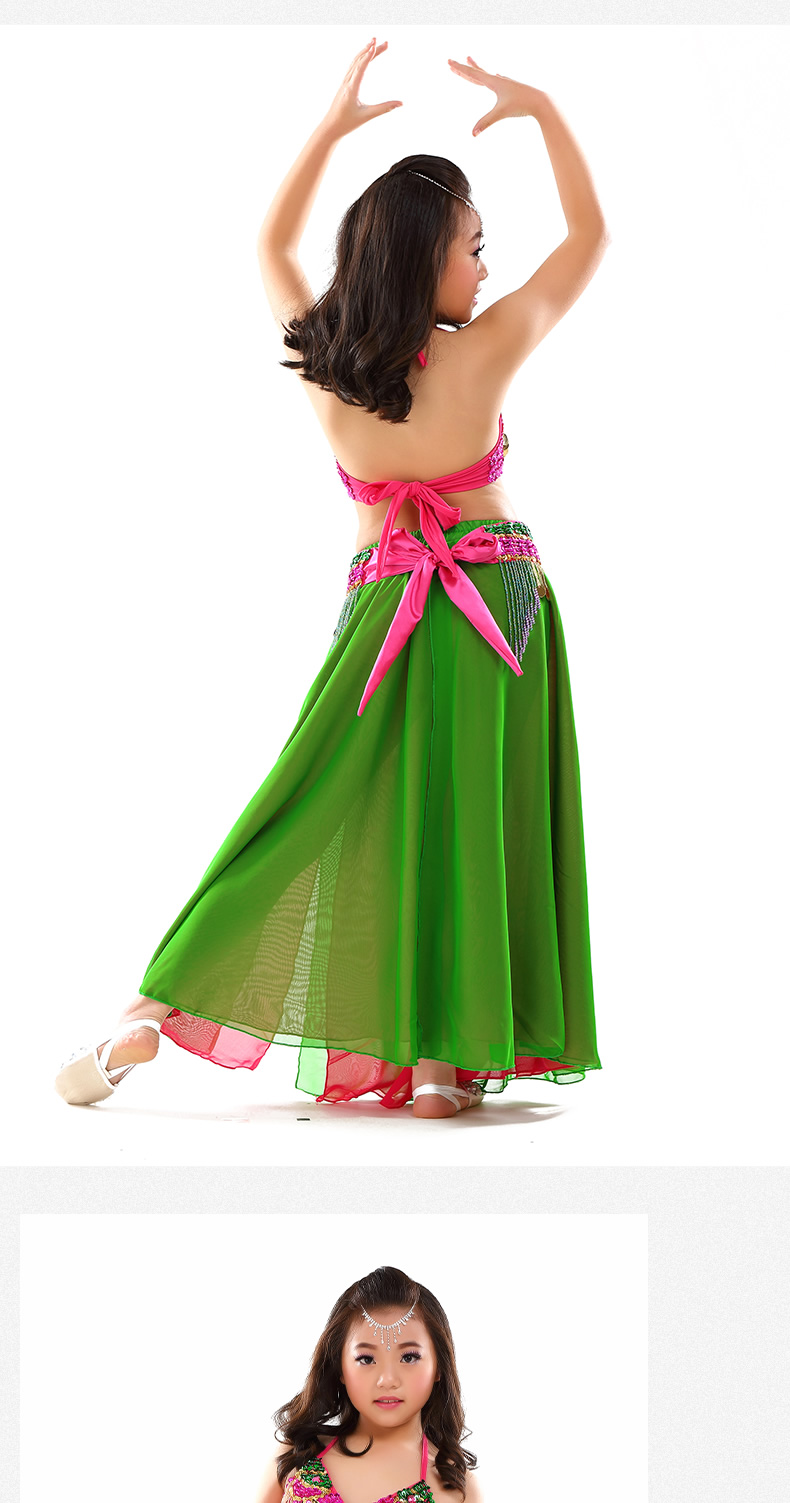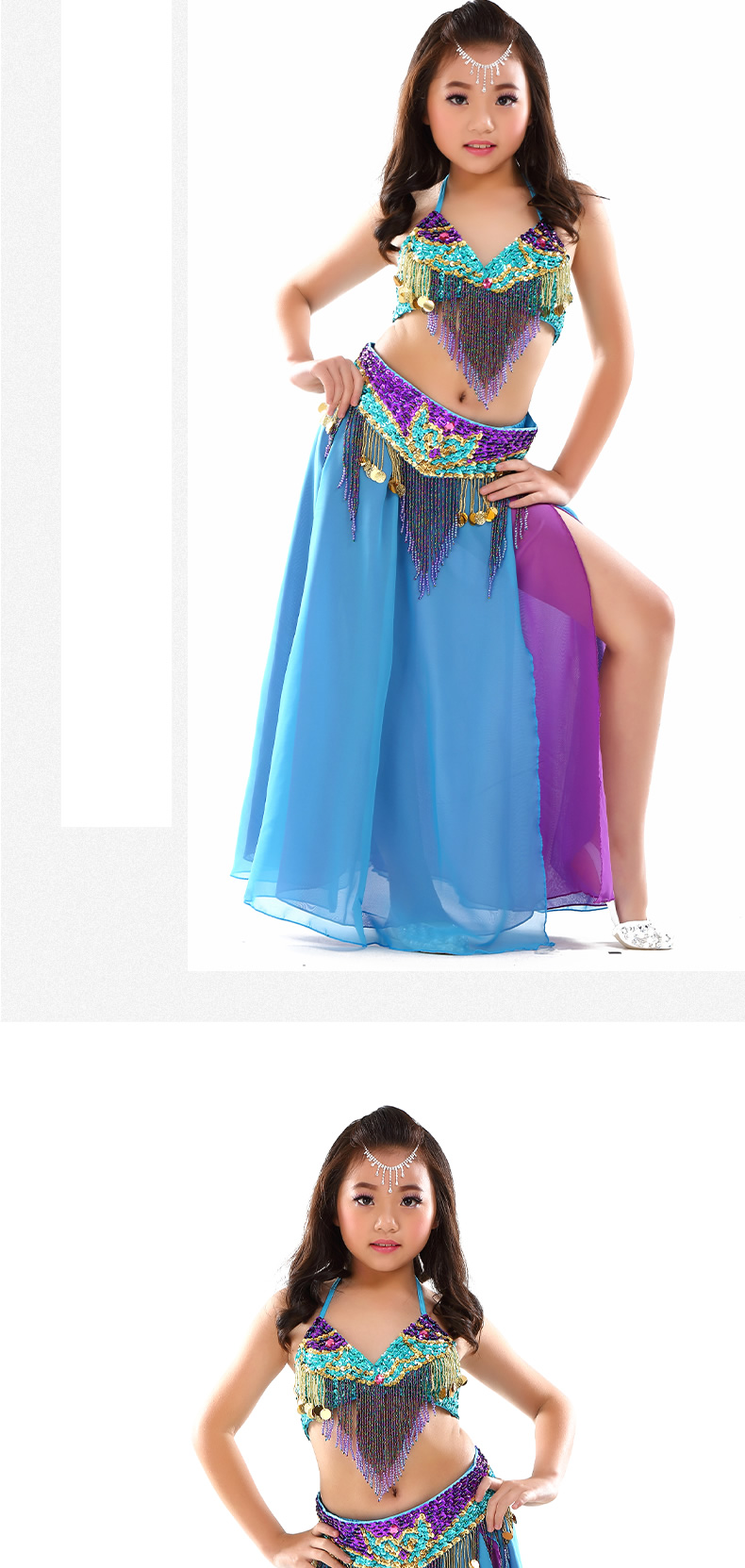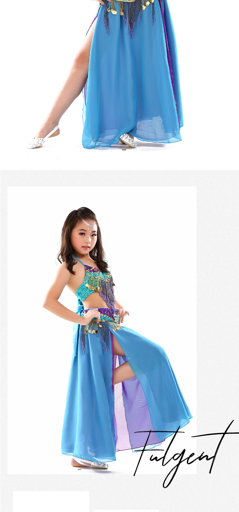 | 肚皮舞裙子 >> 练习裙子 >> 儿童868#+雪纺双开叉间色裙套装 |