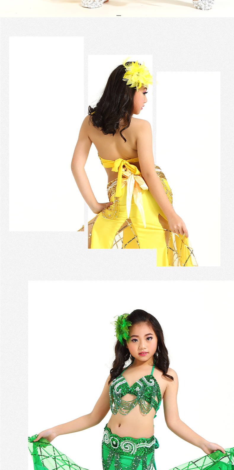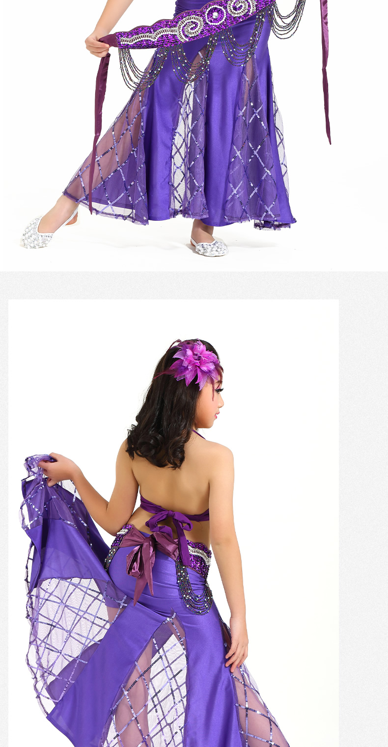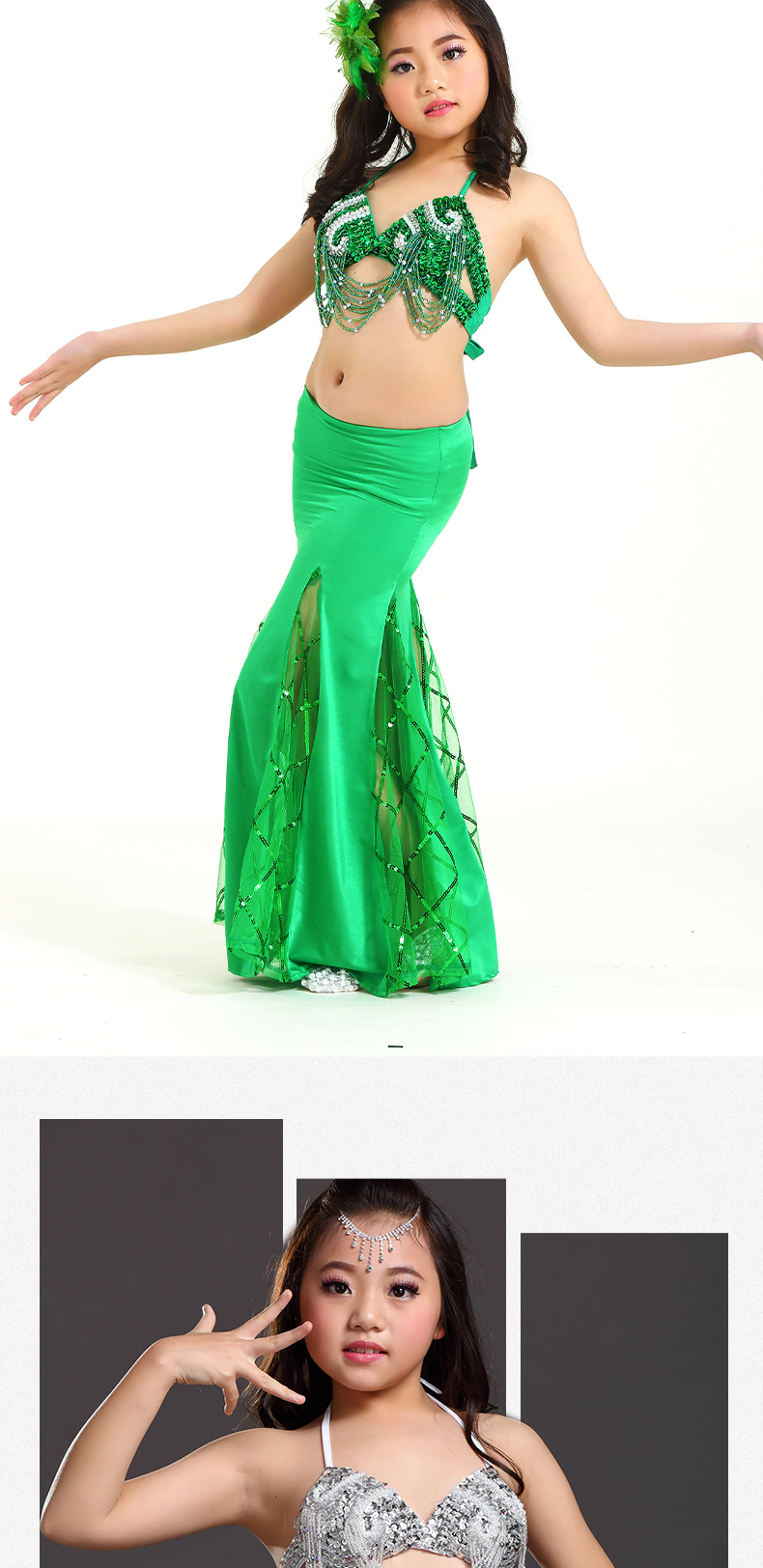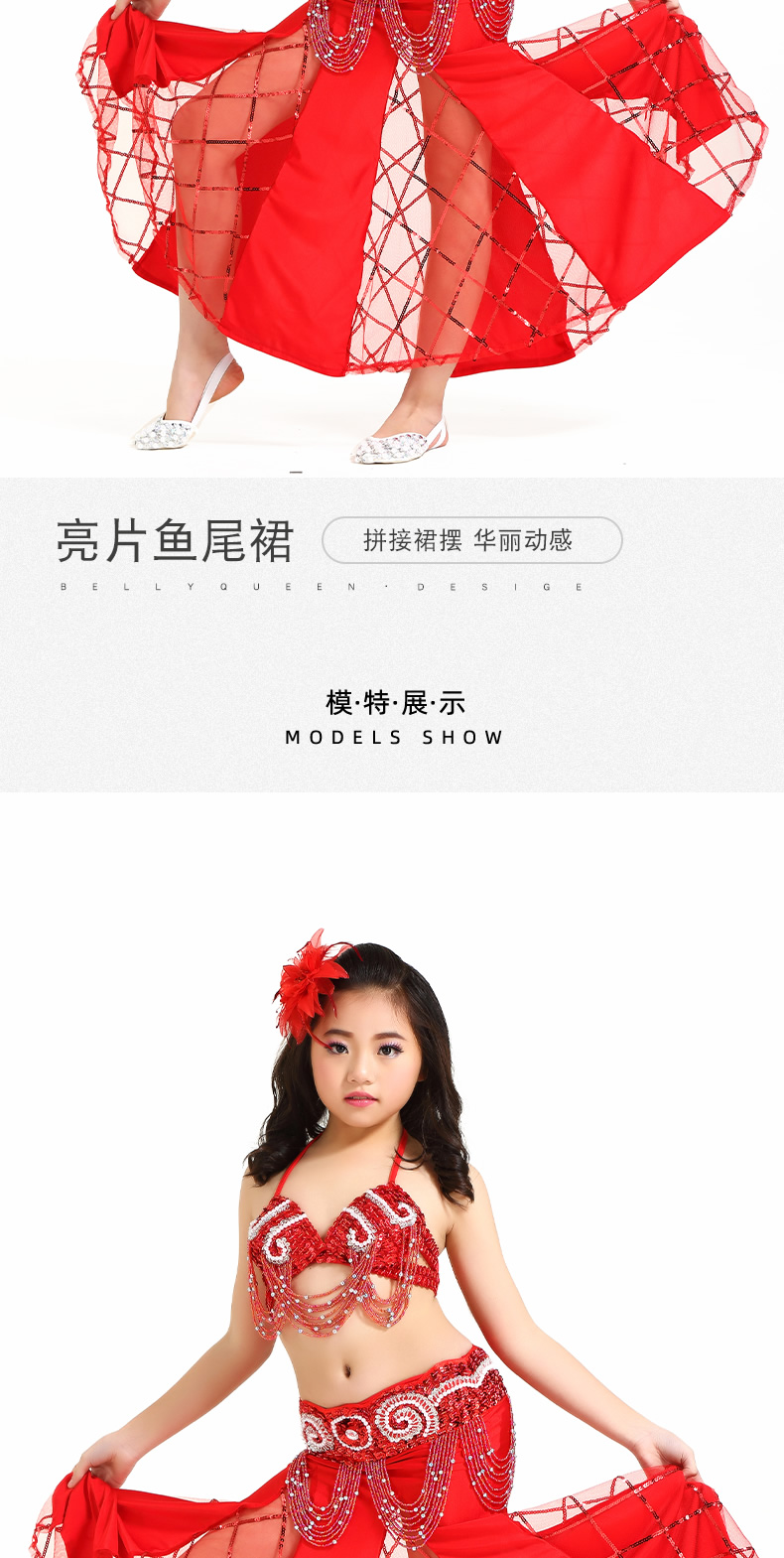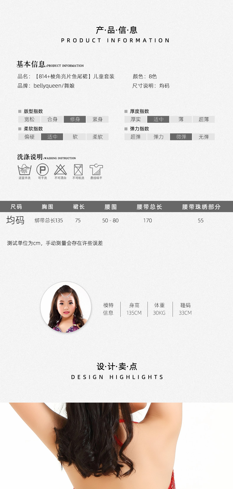| 肚皮舞裙子 >> 练习裙子 >> 儿童814#+棱角亮片鱼尾裙套装 |