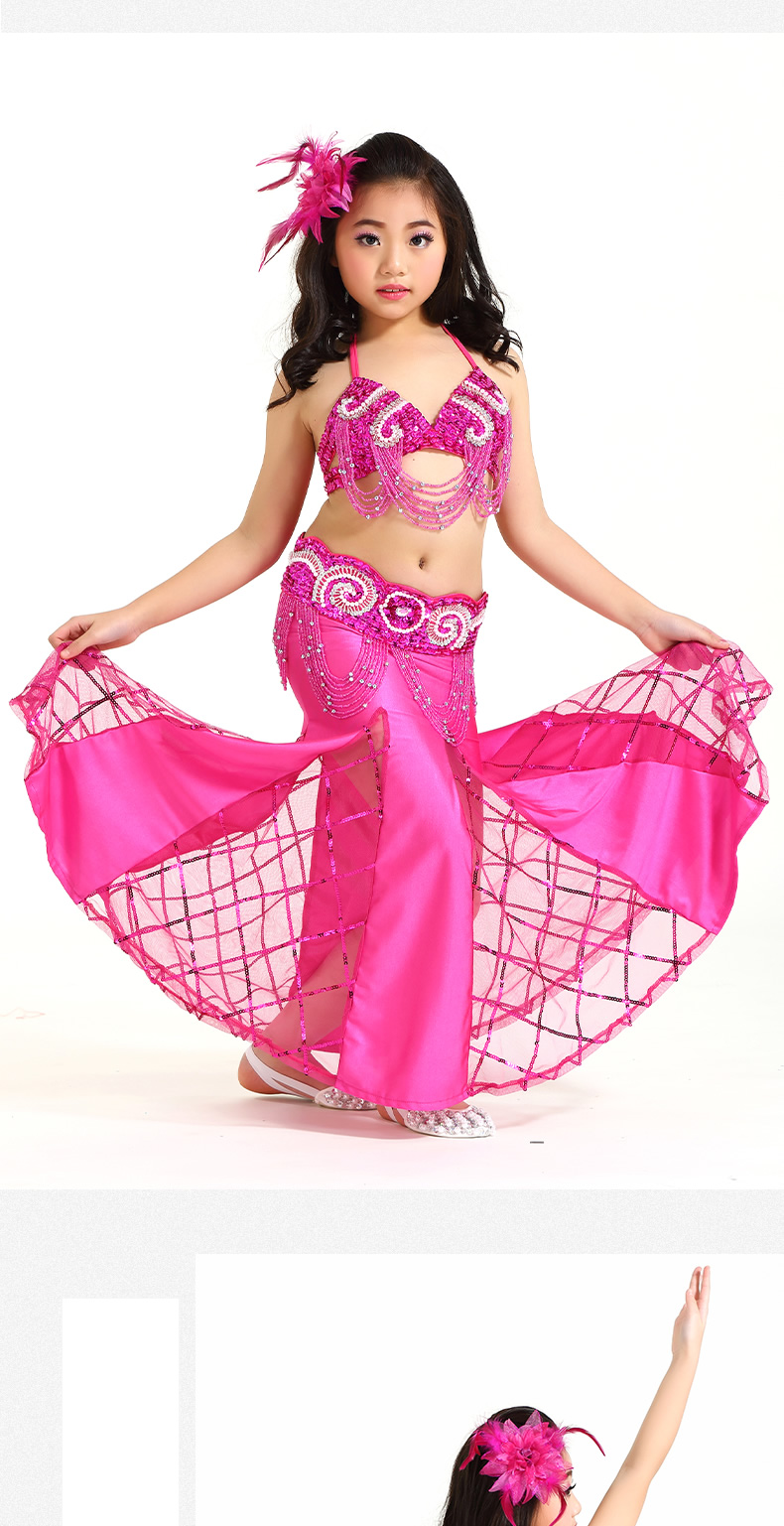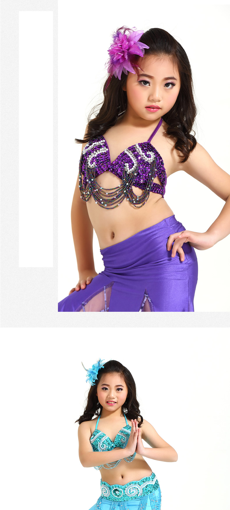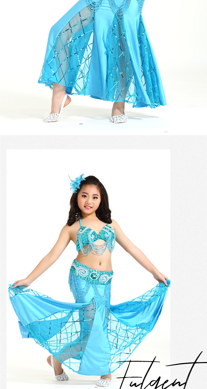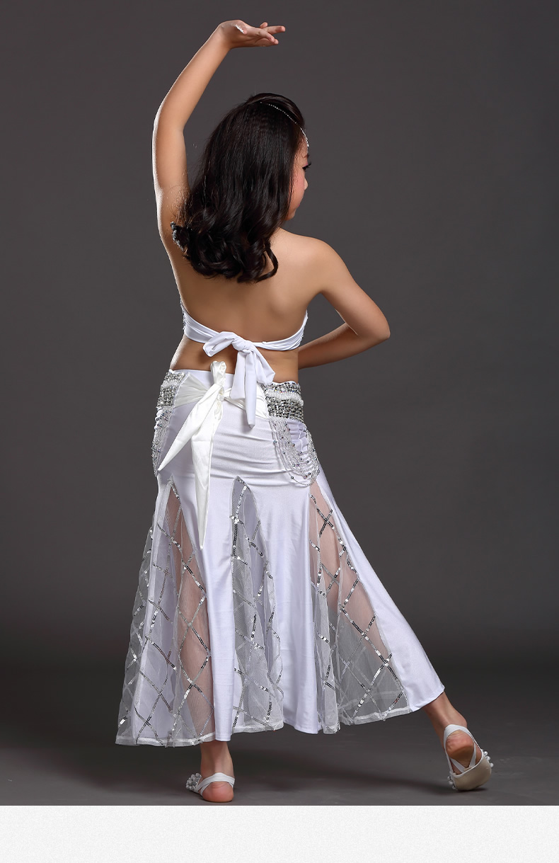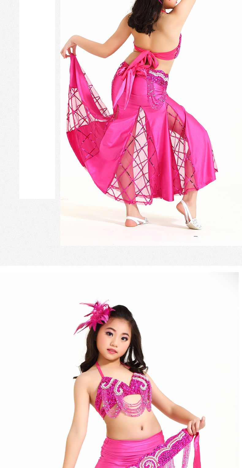 | 肚皮舞裙子 >> 练习裙子 >> 儿童814#+棱角亮片鱼尾裙套装 |