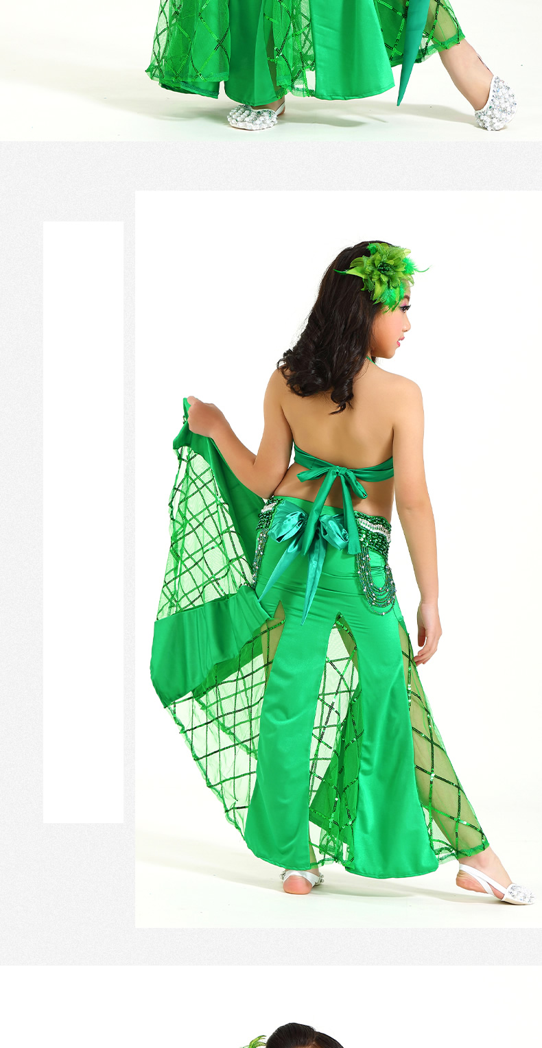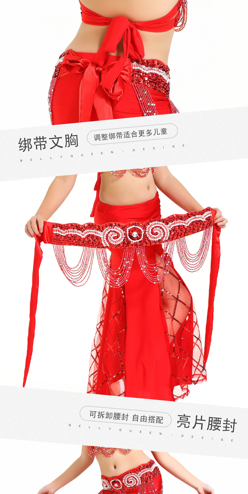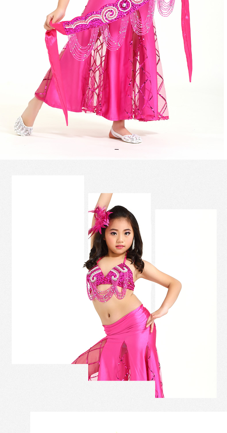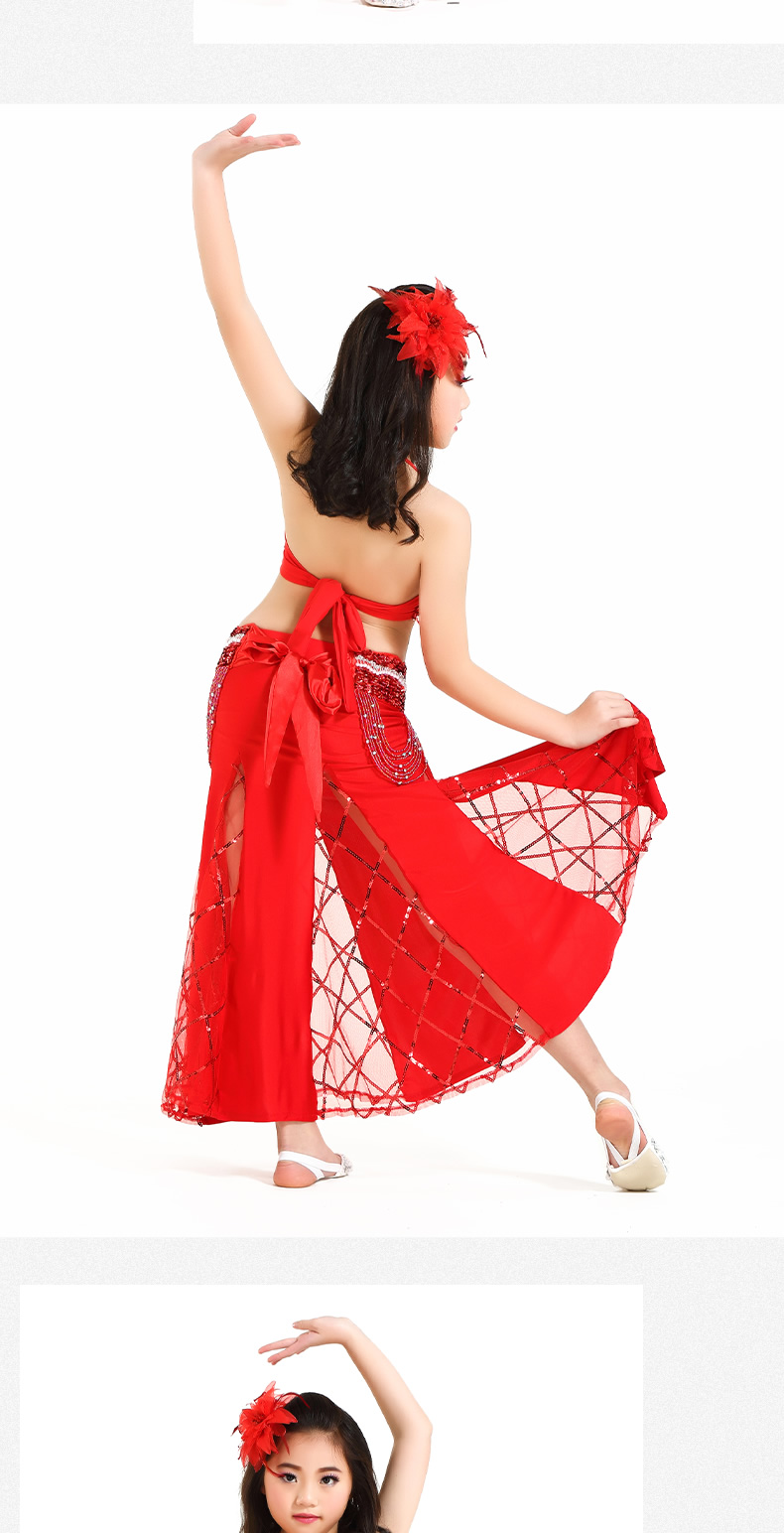 | 肚皮舞裙子 >> 练习裙子 >> 儿童814#+棱角亮片鱼尾裙套装 |