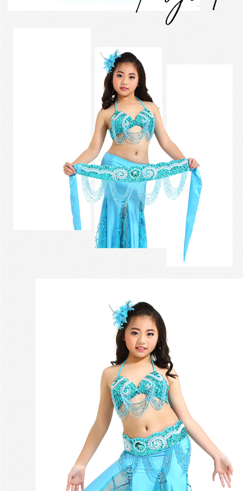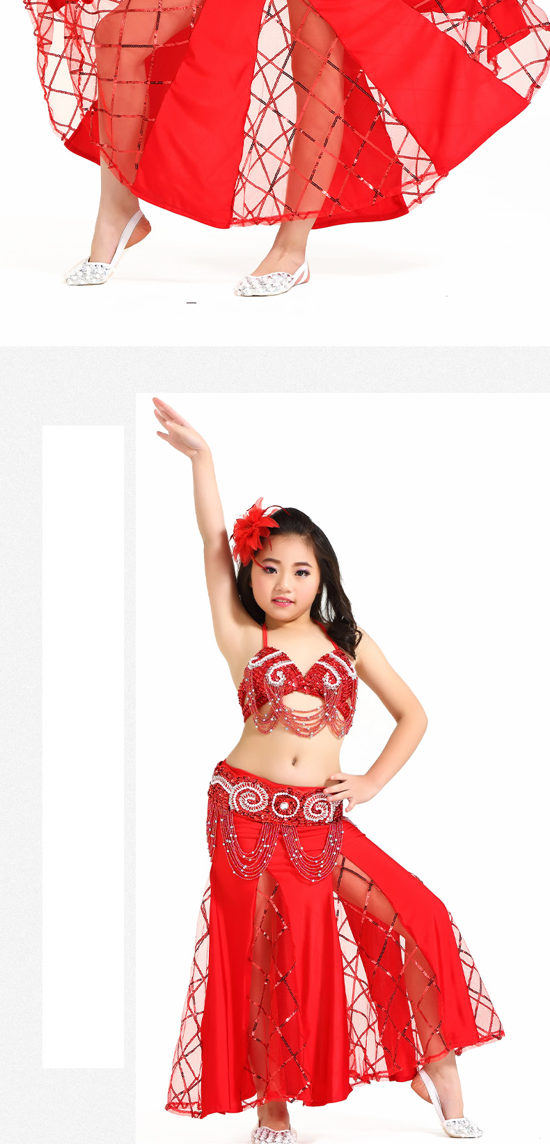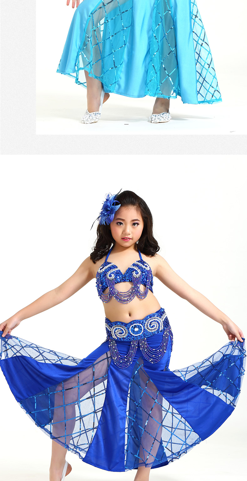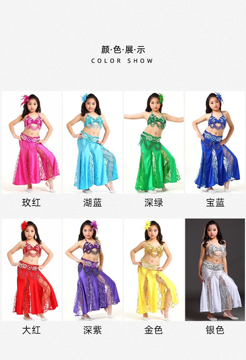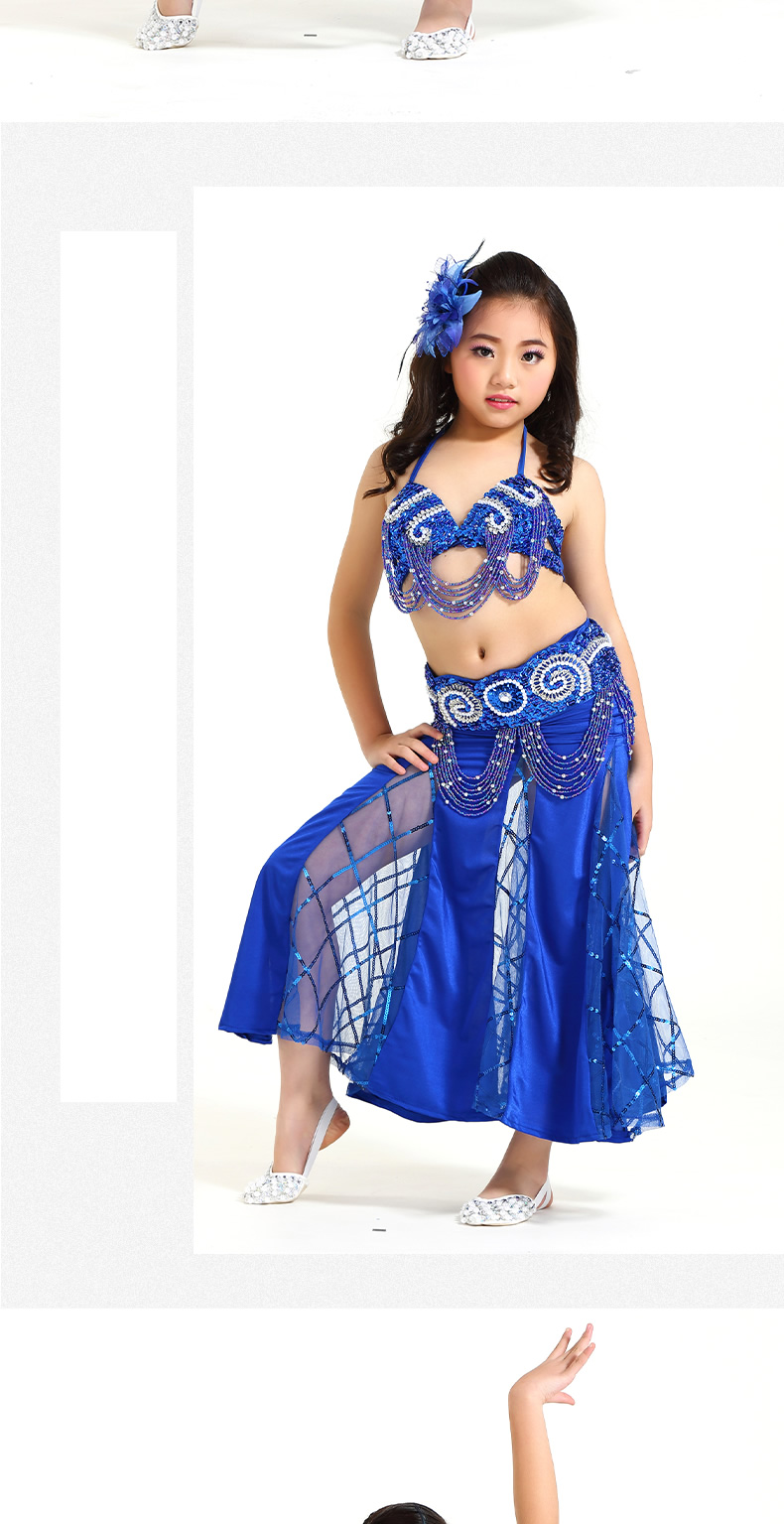 | 肚皮舞裙子 >> 练习裙子 >> 儿童814#+棱角亮片鱼尾裙套装 |