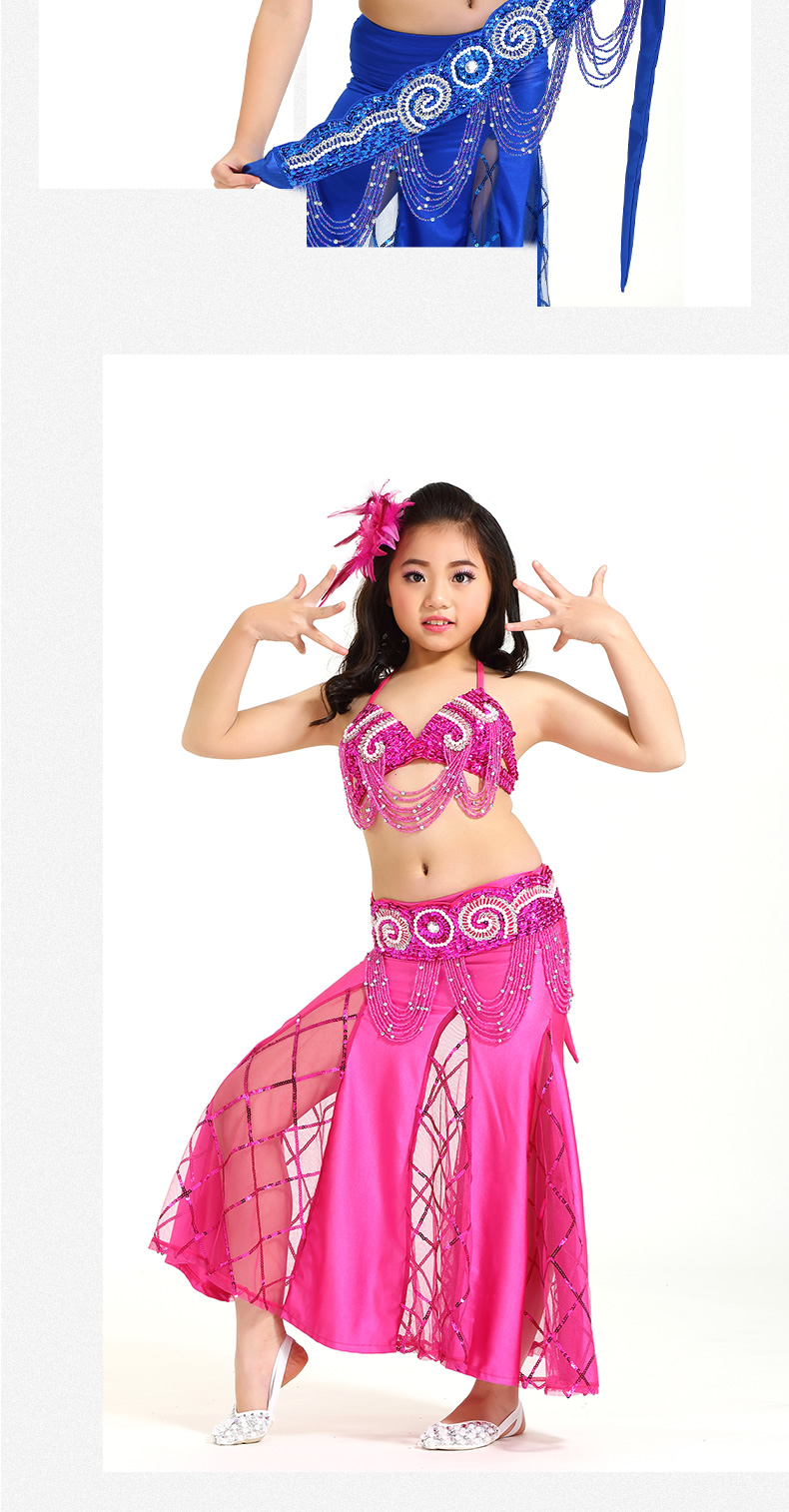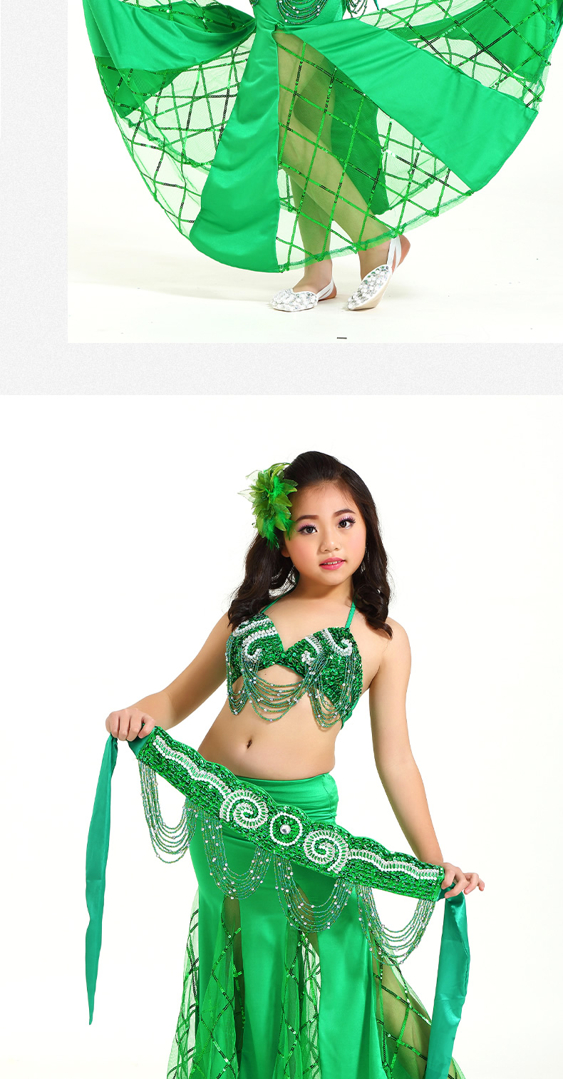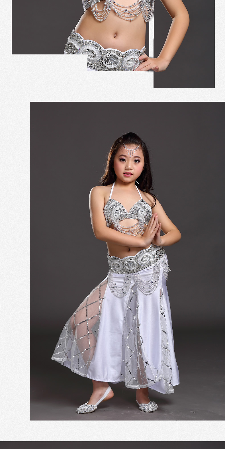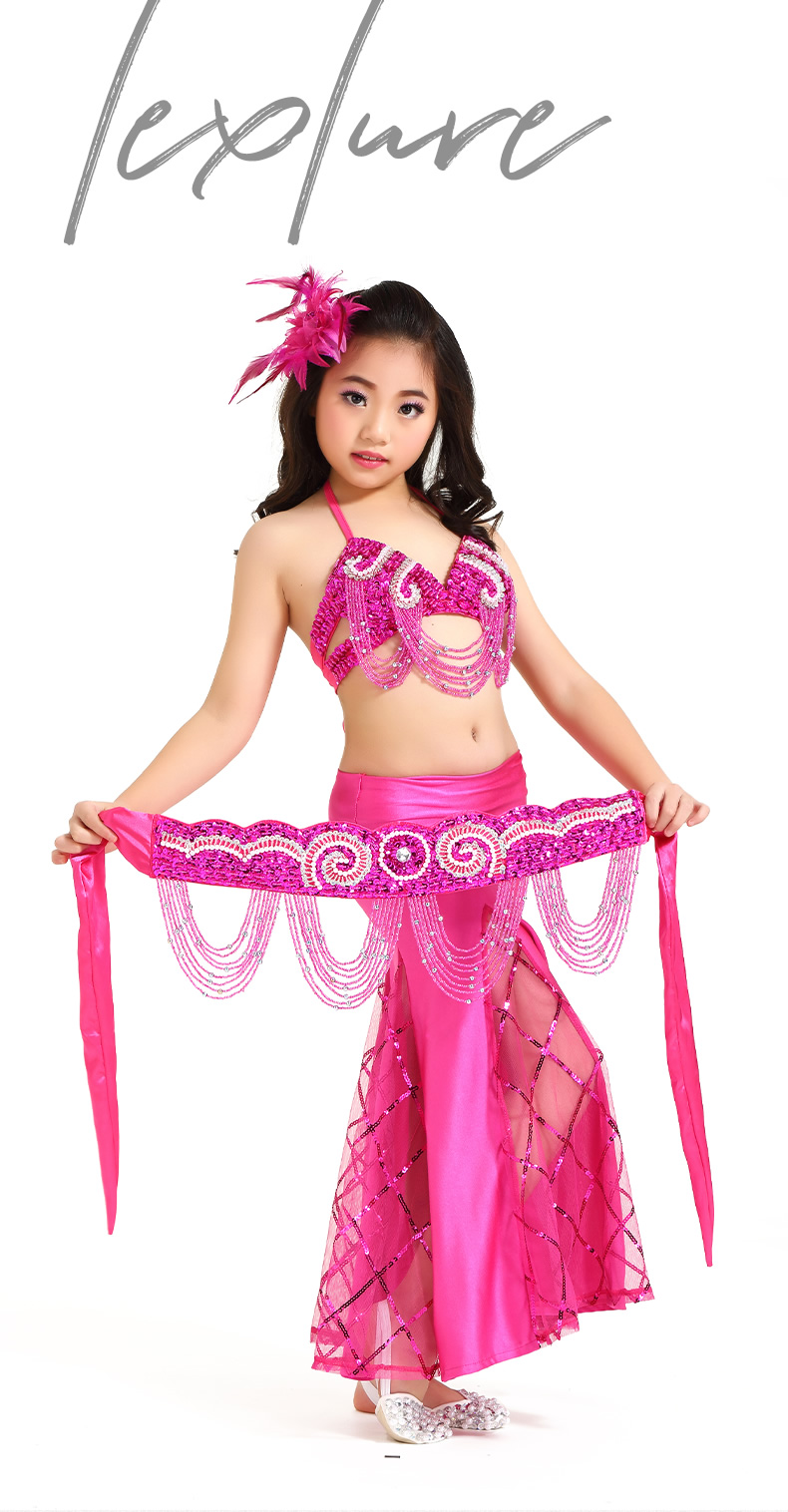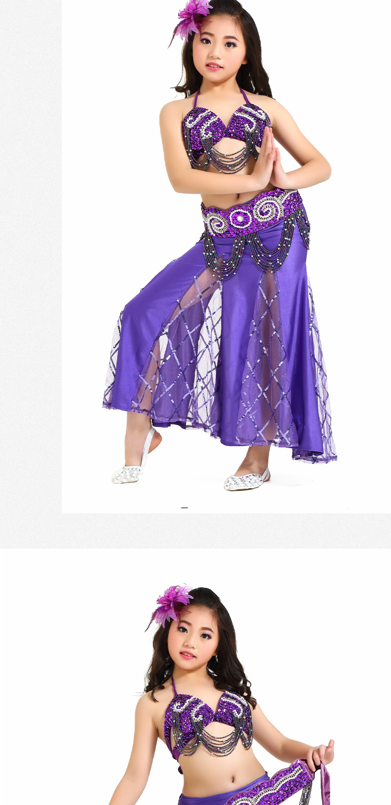 | 肚皮舞裙子 >> 练习裙子 >> 儿童814#+棱角亮片鱼尾裙套装 |