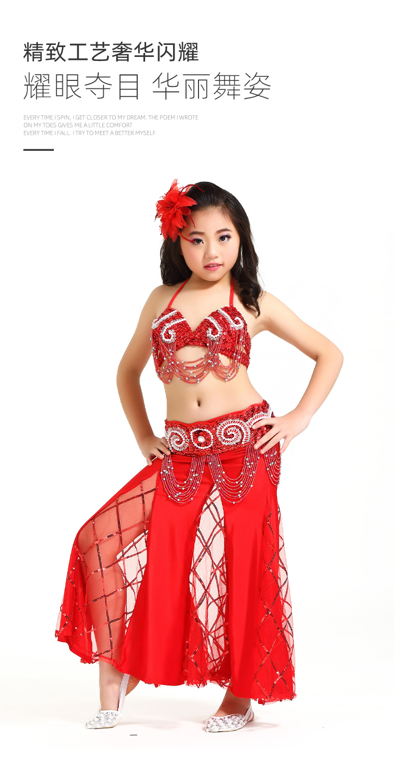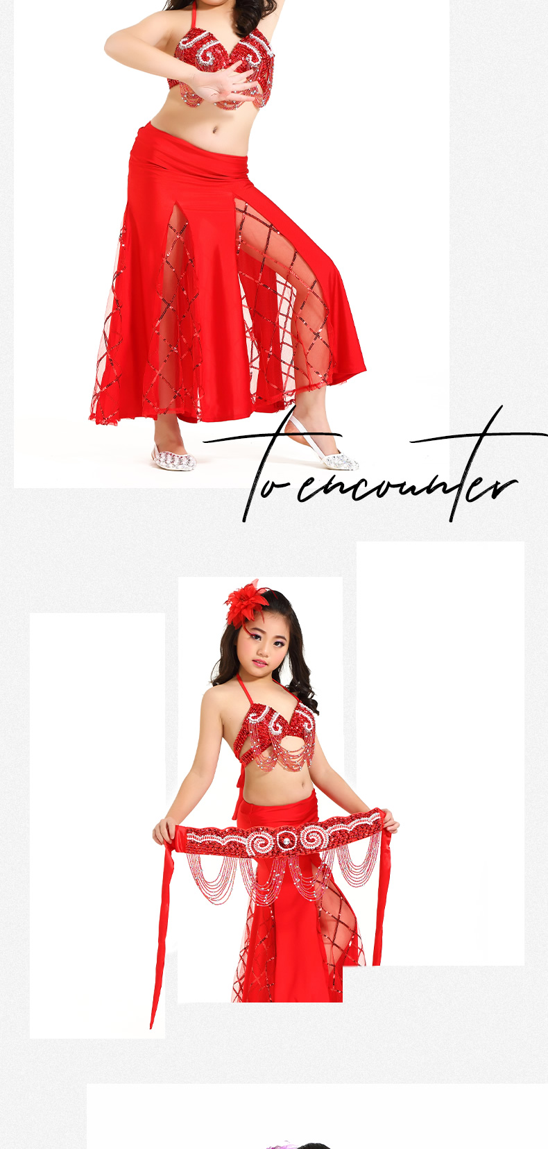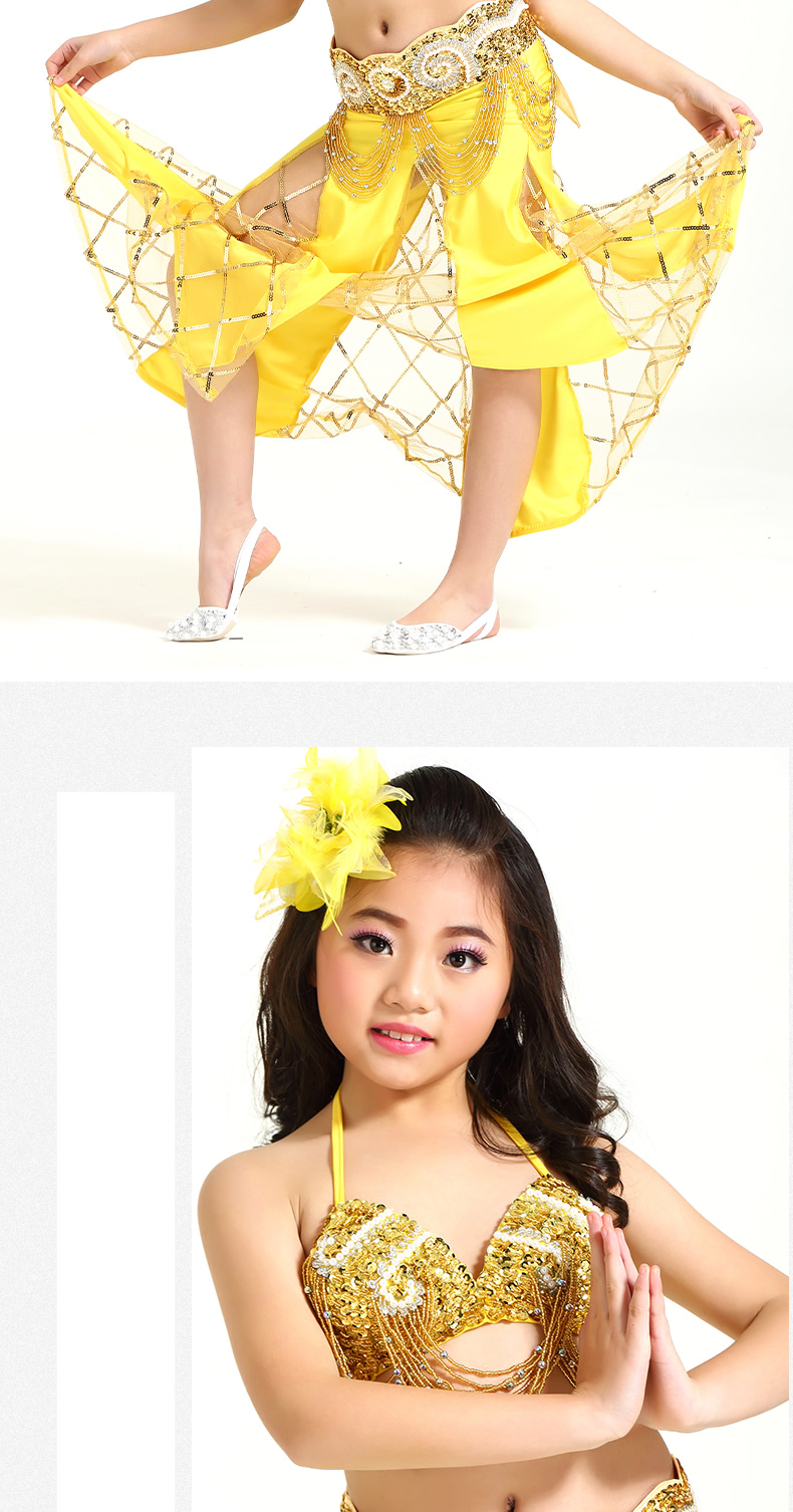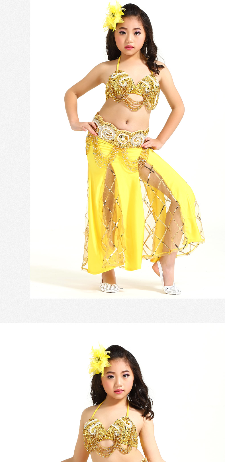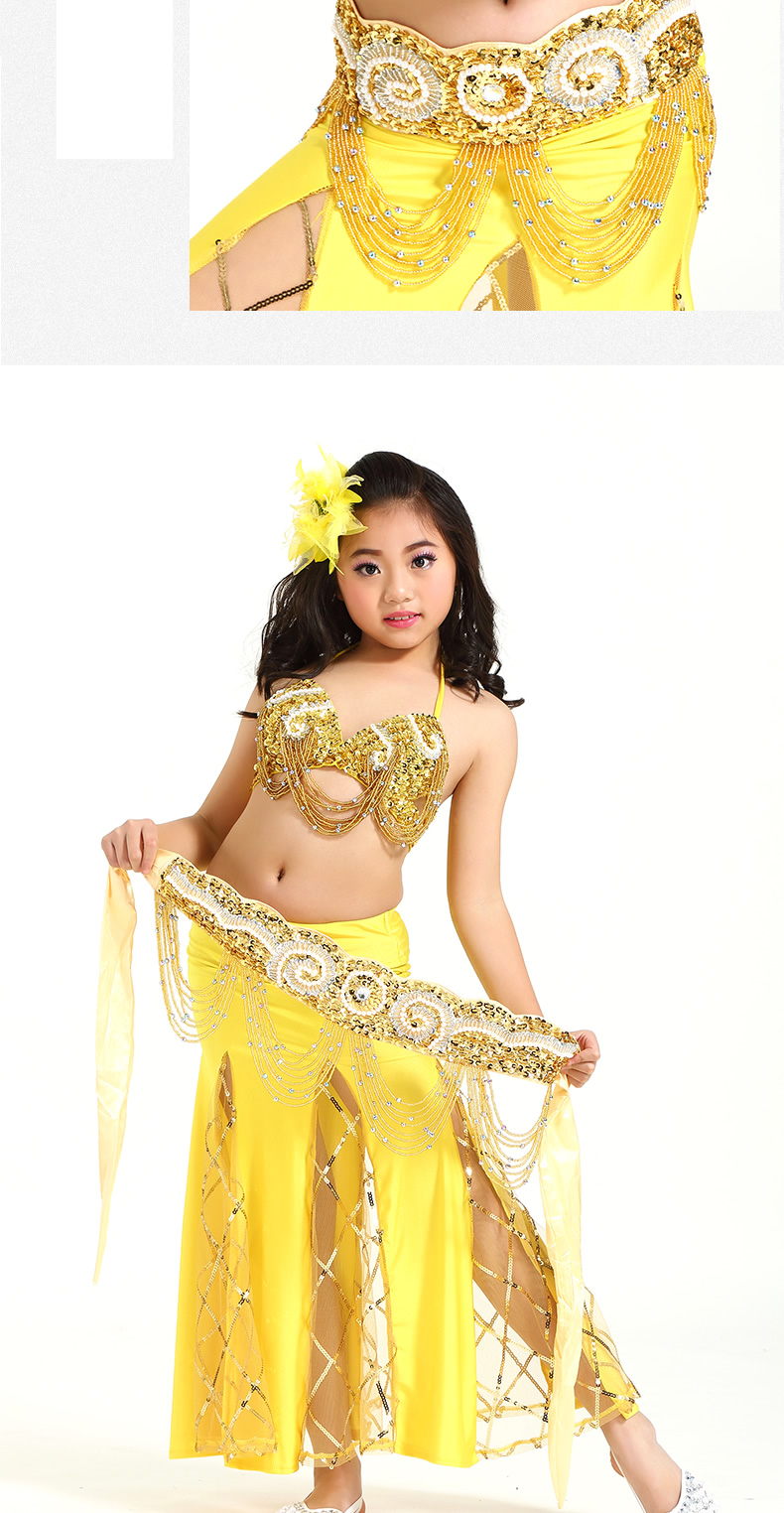 | 肚皮舞裙子 >> 练习裙子 >> 儿童814#+棱角亮片鱼尾裙套装 |