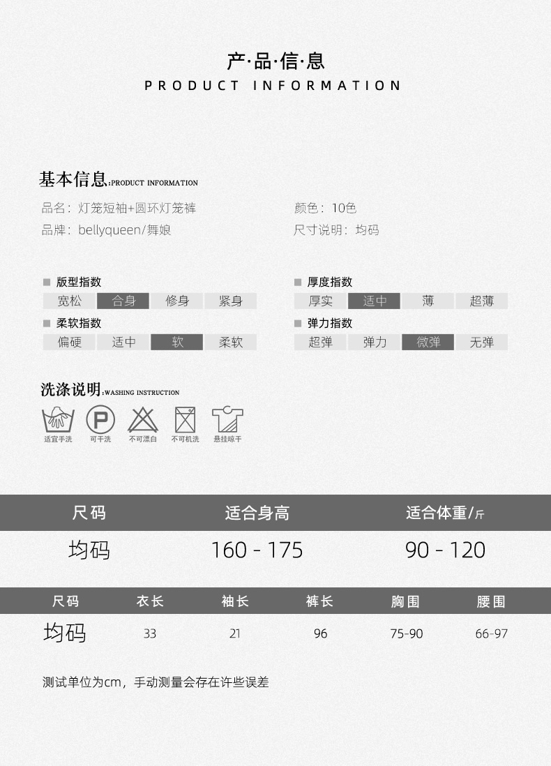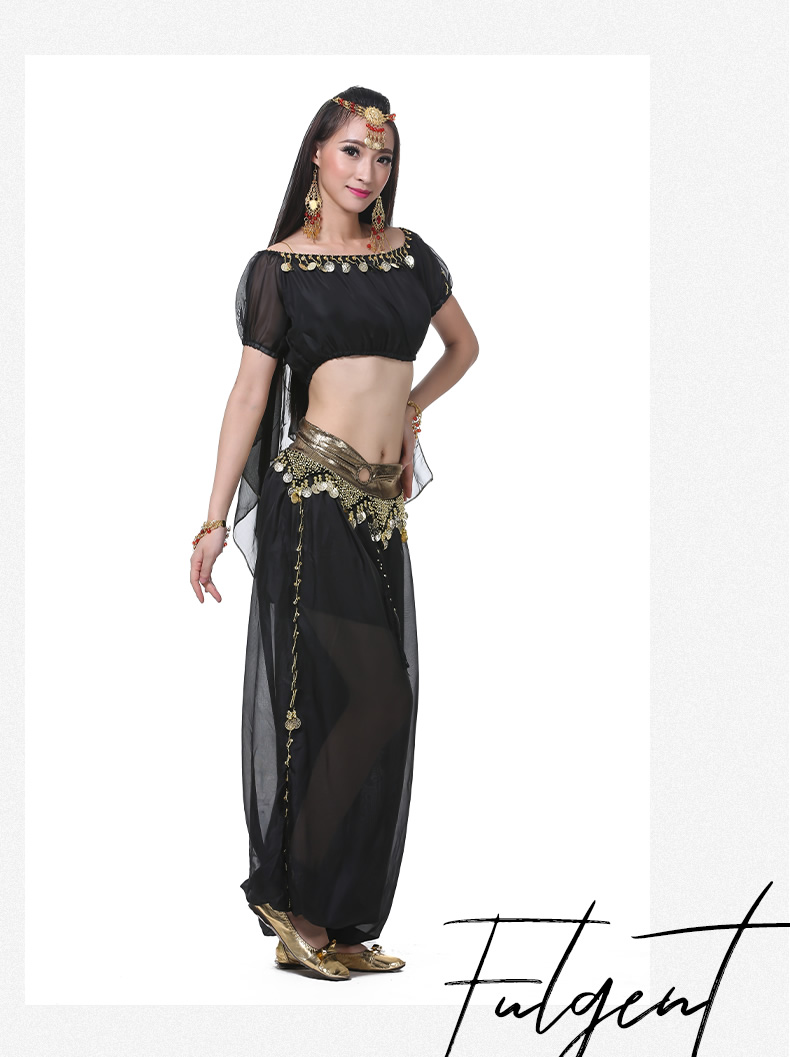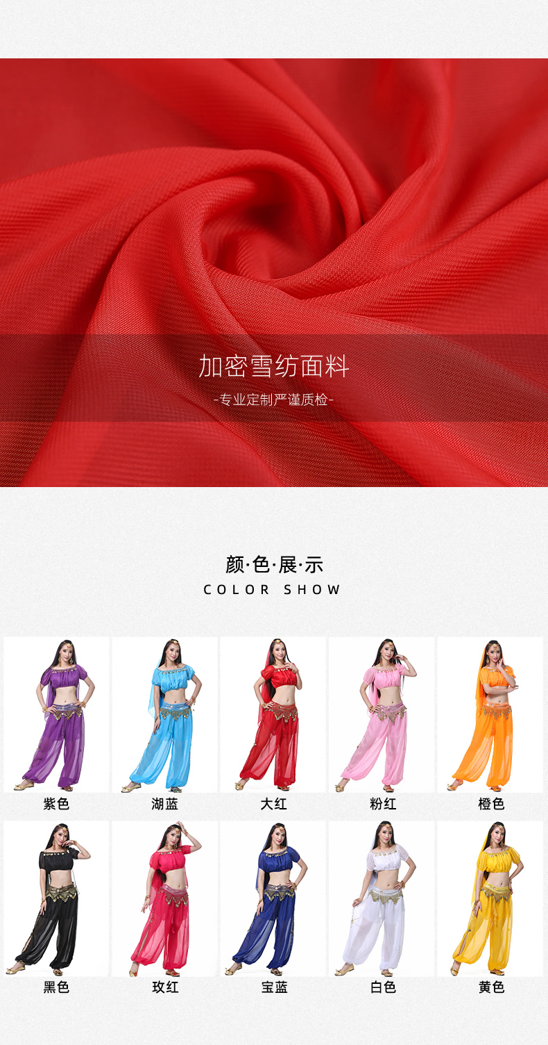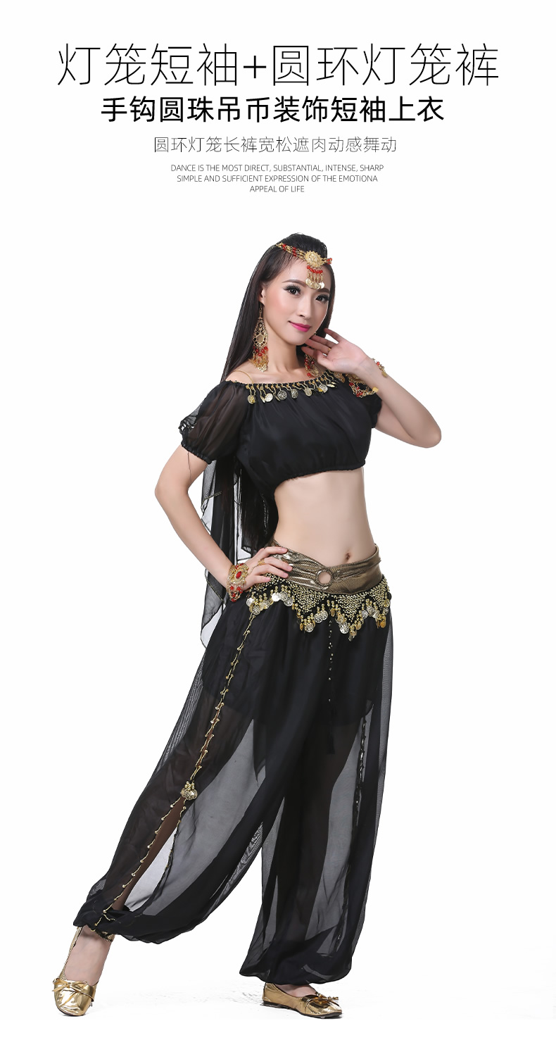 | 肚皮舞套装 >> 练习套装 >> 雪纺灯笼短袖上衣+圆环灯笼裤 |